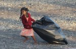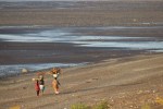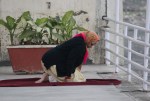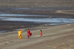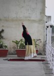 The next day and a half I continued to look for points of interest and beauty where I could find them. This little resort town was not without its charms. There was a hawk that sat in the palm outside our window, searching the ground below for food and eyeing me and my camera; women in brightly colored saris – sometimes with heavy bales on their heads, sometimes frolicking as if on vacation – walked along the beach. There was a sweet Muslim woman who took her exercise out on the deck by the kitchen. It looked suspiciously like yoga. A young girl lugging a nearly full trash bag – collecting, I suspect items for use or trade in her village; a crow pulling the husk off a coconut to feather her nest and boats marooned by a low tide that refused to come back.