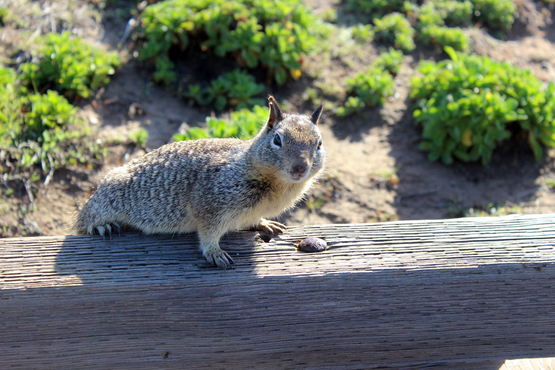 Cambria: Along the Pacific Coast Highway in Cambria there are raised boardwalks on the cliffs overlooking the ocean. Under these walkways exists an entire eco-system. There are squirrels, rabbits, lizards, snakes, spiders and various other bugs and rodents. So used to humans, the squirrels and the rabbits were unafraid of our presence and even willing to pose for close-ups.