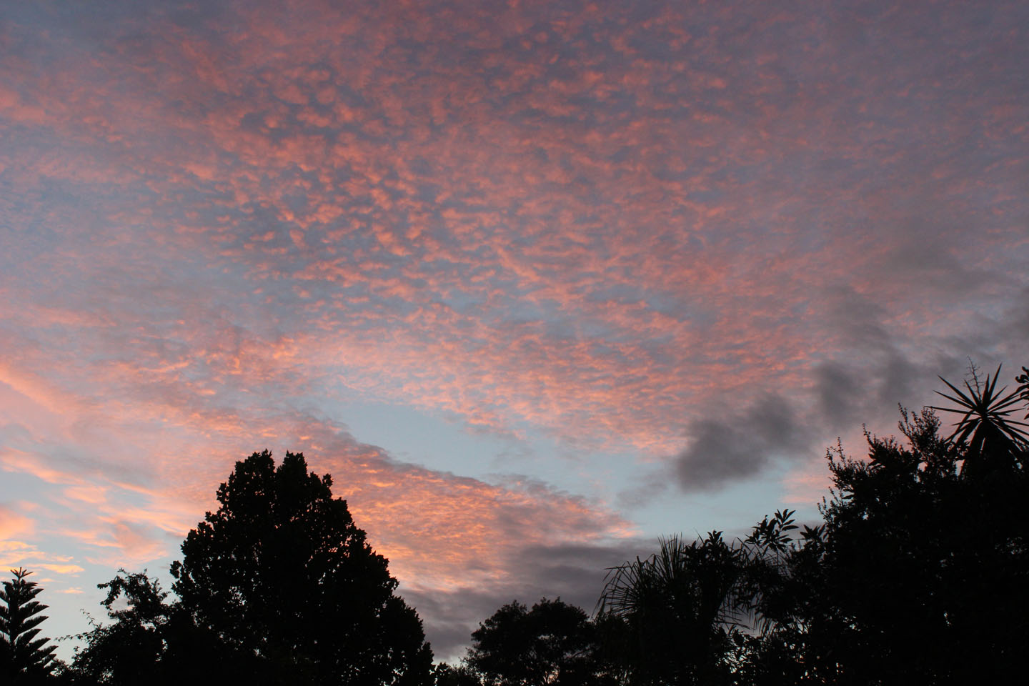Oviedo, FL: One of the benefits of being an early riser is the chance to witness the world come alive every morning. As I sit in my living room journaling, reading – or let’s be honest – typing on the computer in the wee hours, I begin to perceive a change in the light. My eyes are drawn to the French doors, then beyond. Through the trees I see the tiniest hint of pink. I know it’s going to be a beautiful, soft sunrise. I walk outside, tip toeing in bare feet through the flowers that have yet to open, to get the best view. As I’m gazing skyward at the fleece-like pink clouds I notice the little gray puffs of cloud pretending to be smoke signals. I think they’re saying, “Good morning, it’s going to be a beautiful day.”