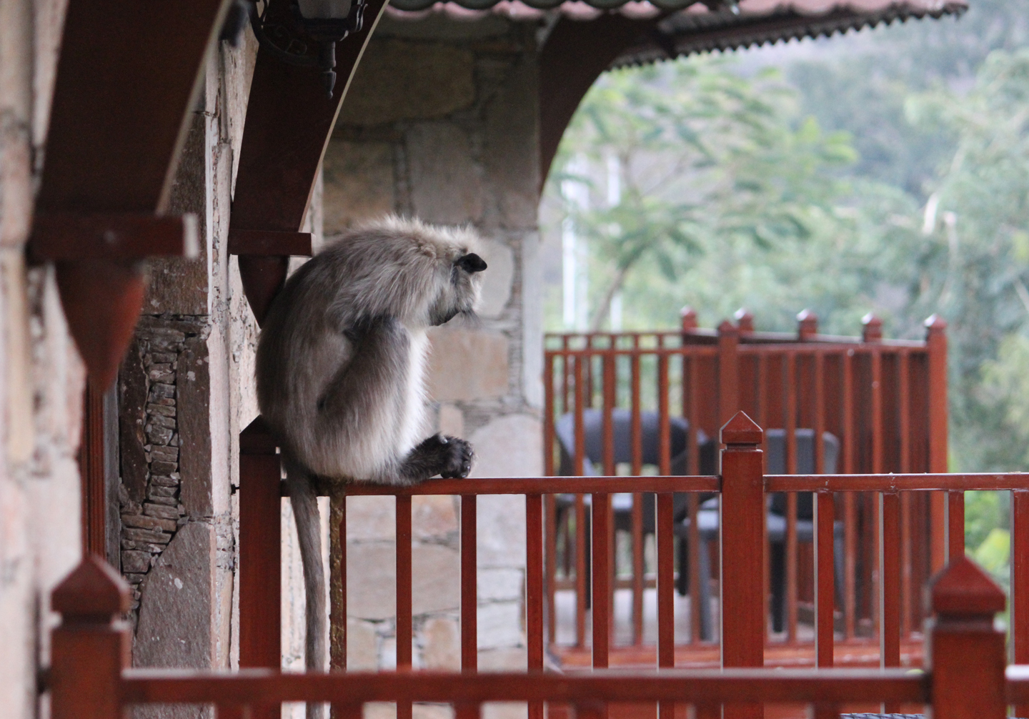 Pushkar, Rajasthan, India: Upon waking I made my way across the chilly floor to the patio. Maybe we were positioned to see the sun rise over the mountains. I had no idea, we arrived in the dark last night so where we were was pretty much a mystery. As I pulled back the blinds and opened the slider I reached for my camera. I stepped onto the patio and took a deep breath in. Cool, clean mountain air. While glancing around looking for the sun I spotted this little friend on the next balcony over. While I was taking his photo he awoke. He moved to front side of the railing and eventually back onto the roof to start his day.