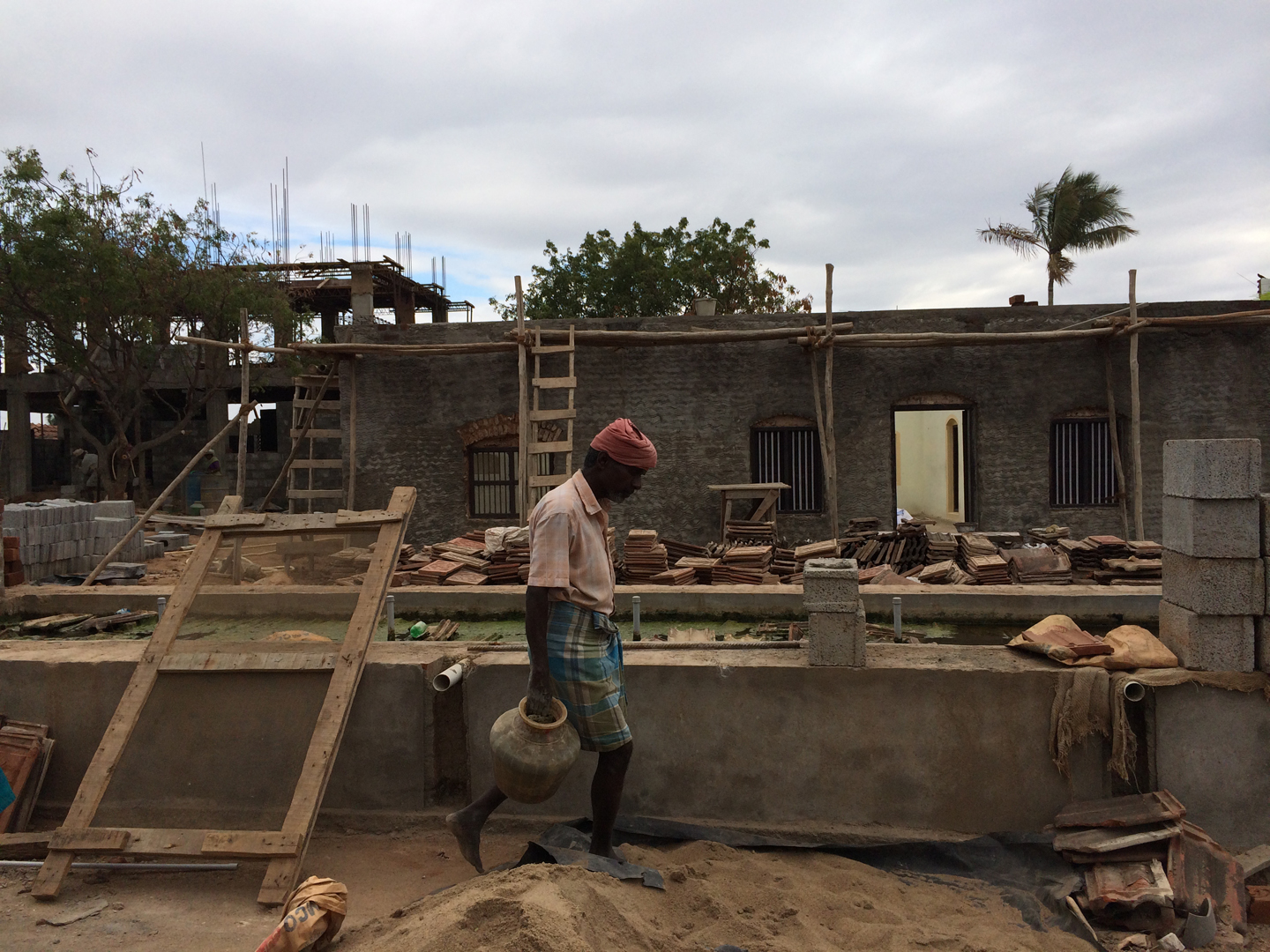 Back on the bus we are headed for Swami Satchidananda’s childhood home and the lotus shrine, under construction, behind it. We are in a neighborhood. There are children walking home from school, houses lining the street and the smells of the evening meal being prepared. As we park in front of the modest home we are warmly welcomed and asked to come in.