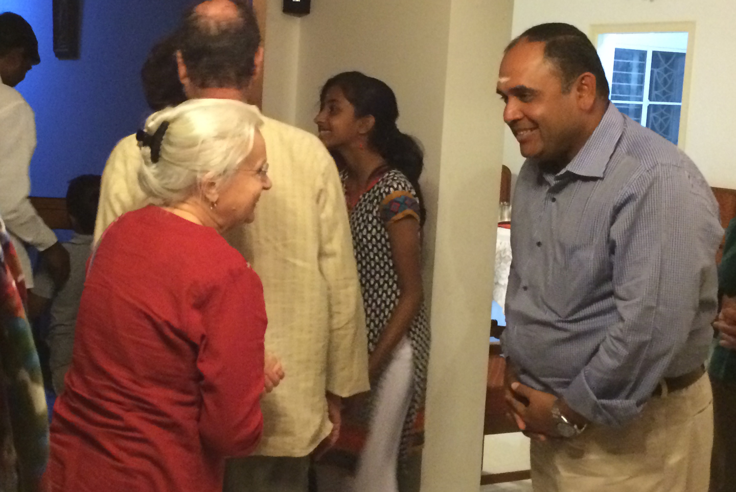 Having consumed to our capacities we release our plates and sit back. Murugesh introduces us to the genius who created all the delicious food and his staff. We appreciate them all then begin to say our goodbyes. It has been a beautiful evening honoring the reason we are here, Swami Satchidananda. He’s kept alive in the fond, and sometimes funny, memories of others and the works and good deeds he has left behind.