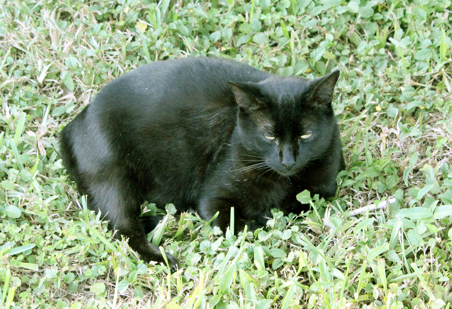 Rocking our dinner off with a glass of wine, we are joined by Salem, the black cat. He is sitting at safe distance and no amount of coaxing or cooing is garnering even a look in our direction. However, once we rise to go in, he is close on our heels. As I open the door he zooms his considerable girth in past my feet. He heads straight for a closet that holds his food.