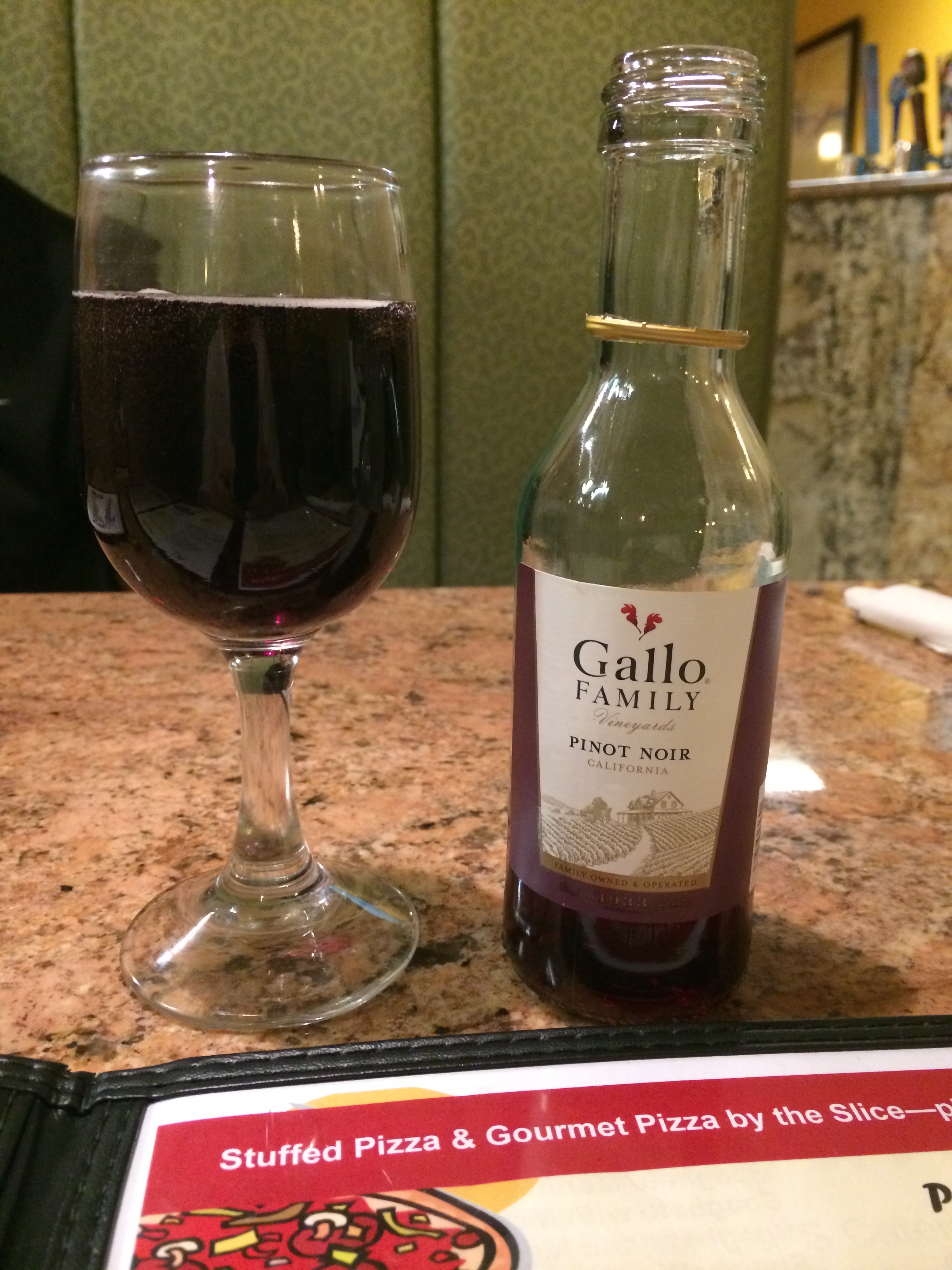 Larry’s first choice, always, is pizza. Lady luck provided us with a lovely little Italian restaurant across the street that specialized in all things pizza. I had a glass of wine. It came in a tiny airplane bottle. This was living.