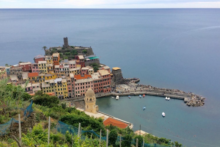 The ferry stops at a few of these villages before we arrive at Vernazza. If you were to google Cinque Terre, the photos that would likely come up are of Vernazza, a horseshoe shaped bay of many colored buildings photographed from high above. I want to take that picture.
