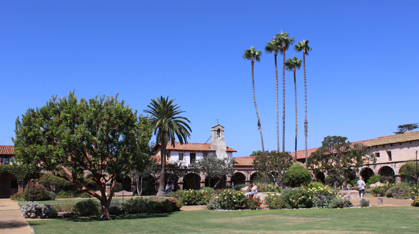 Today we are headed south to San Juan Capistrano on Amtrak. My niece has never been on a train before so it’s fun to get excited all over again about train travel. We cross the tracks to the south side and wait. A freight train shimmies by. The northbound train grinds to a halt. We wait, ours is coming.