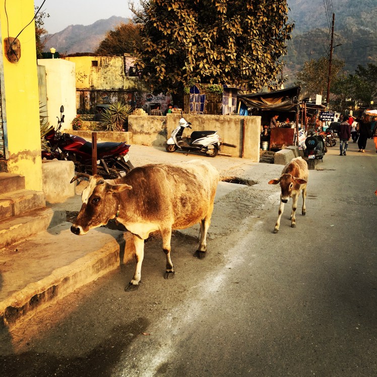 The animals are treated and act much like the people here. There is only so much food. But it seems Rishikesh is a kinder place for all beings. Somehow everyone gets enough.